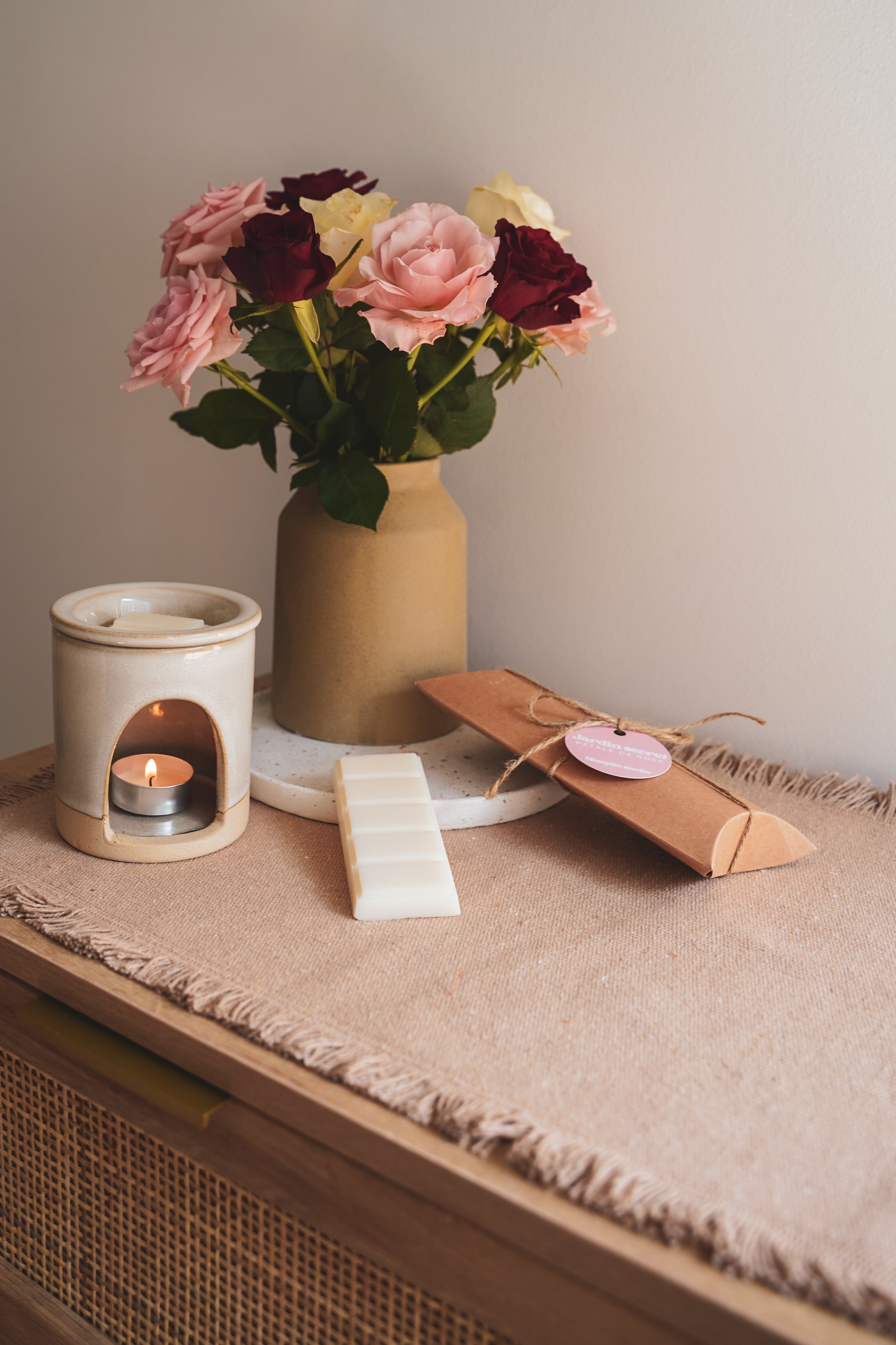 Placez le brûleur sur une surface stable. Chaque fondant s'utilise plusieurs fois jusqu'à ce qu’il ne dégage plus de parfum.
