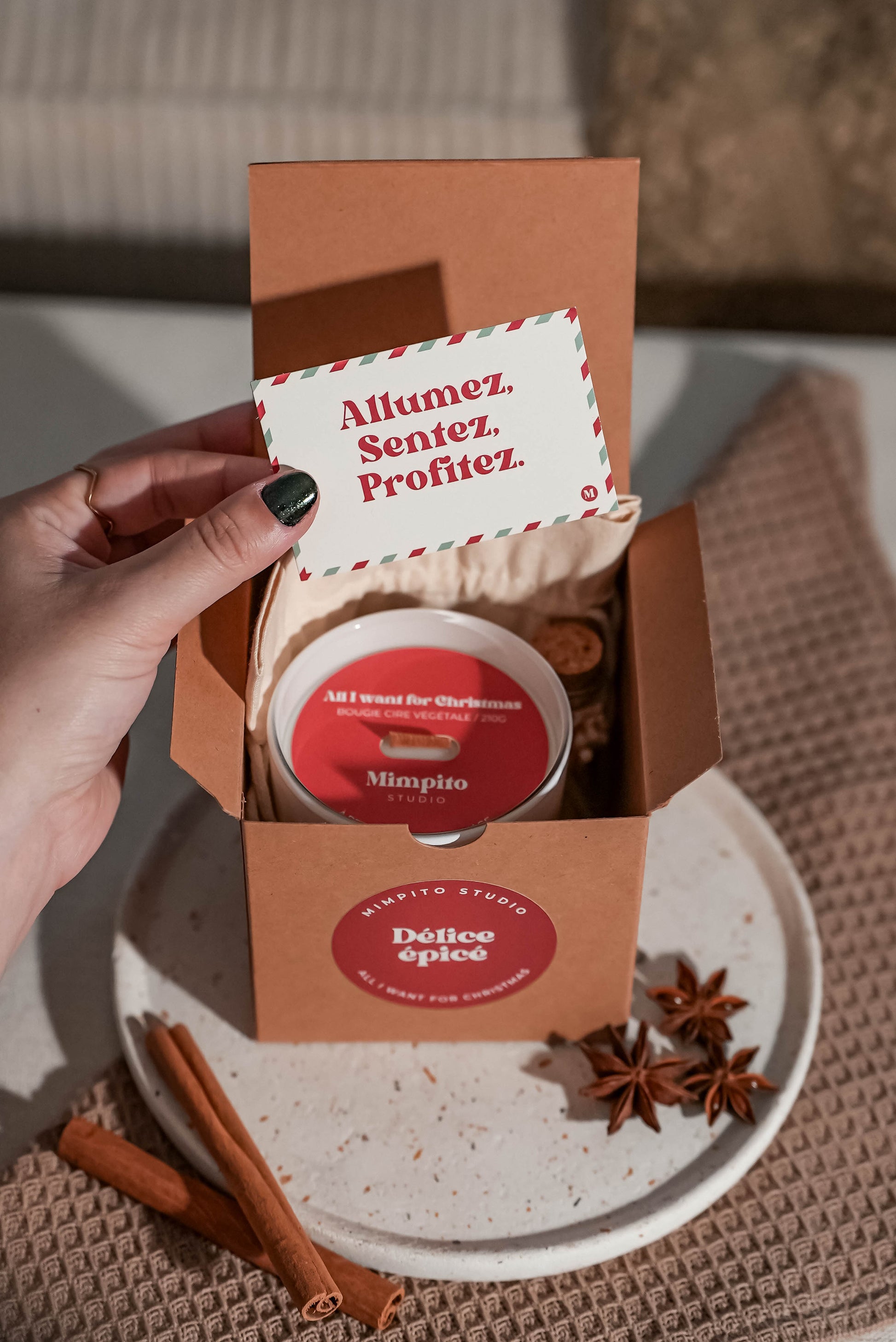 - Bougie emballée dans sa pochette réutilisable en coton, provenance européenne